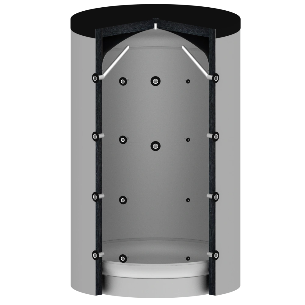 Premium buffer storage tank for highest demands on heat storage and efficiency. Thanks to its highly efficient insulation, heat retention loss is significantly reduced compared to standard storage tanks...