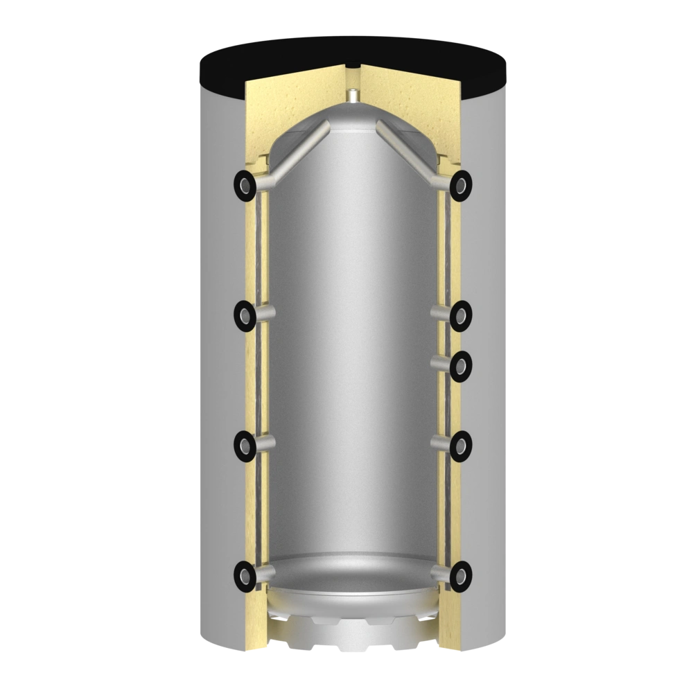Premium buffer storage tank for highest demands on heat storage and efficiency. Thanks to its highly efficient insulation, heat retention loss is significantly reduced compared to standard storage tanks...