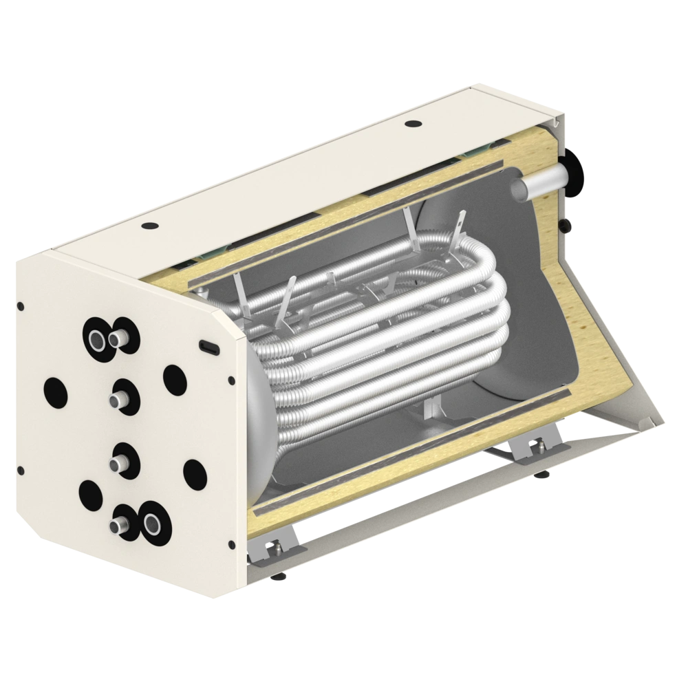 De boiler is voorzien van een 50 mm dikke geschuimde hardschuimisolatie die niet kan worden verwijderd.