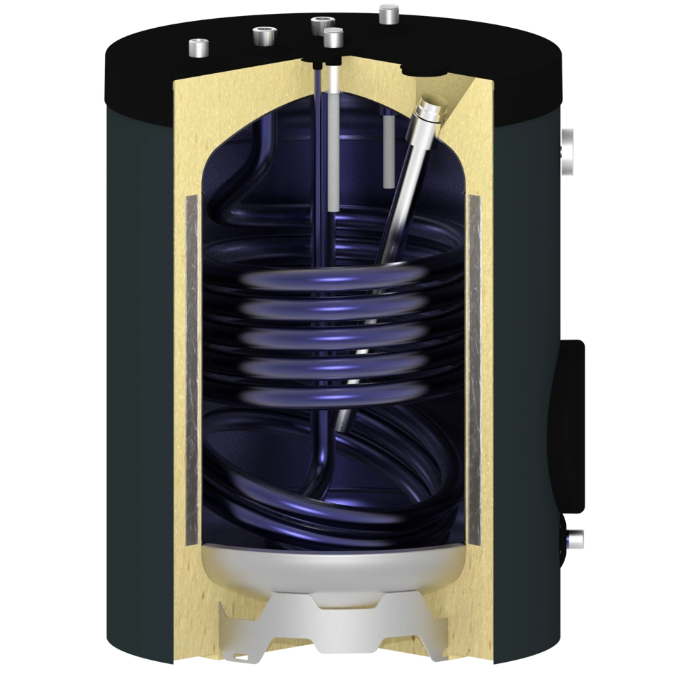 Le réservoir est en acier S235JR émaillé, l'echangeur est en acier S235TR1.