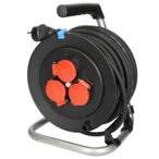 Cable drums are intended to be used for a flexible power supply both indoors and outdoors, in the garden and on the construction site. They can power several electric devices via one single cable. The winding drum prevents twisting, knotting and unnecessary stumbling blocks, which could be dangerous in the working area when using extension cables without drum.