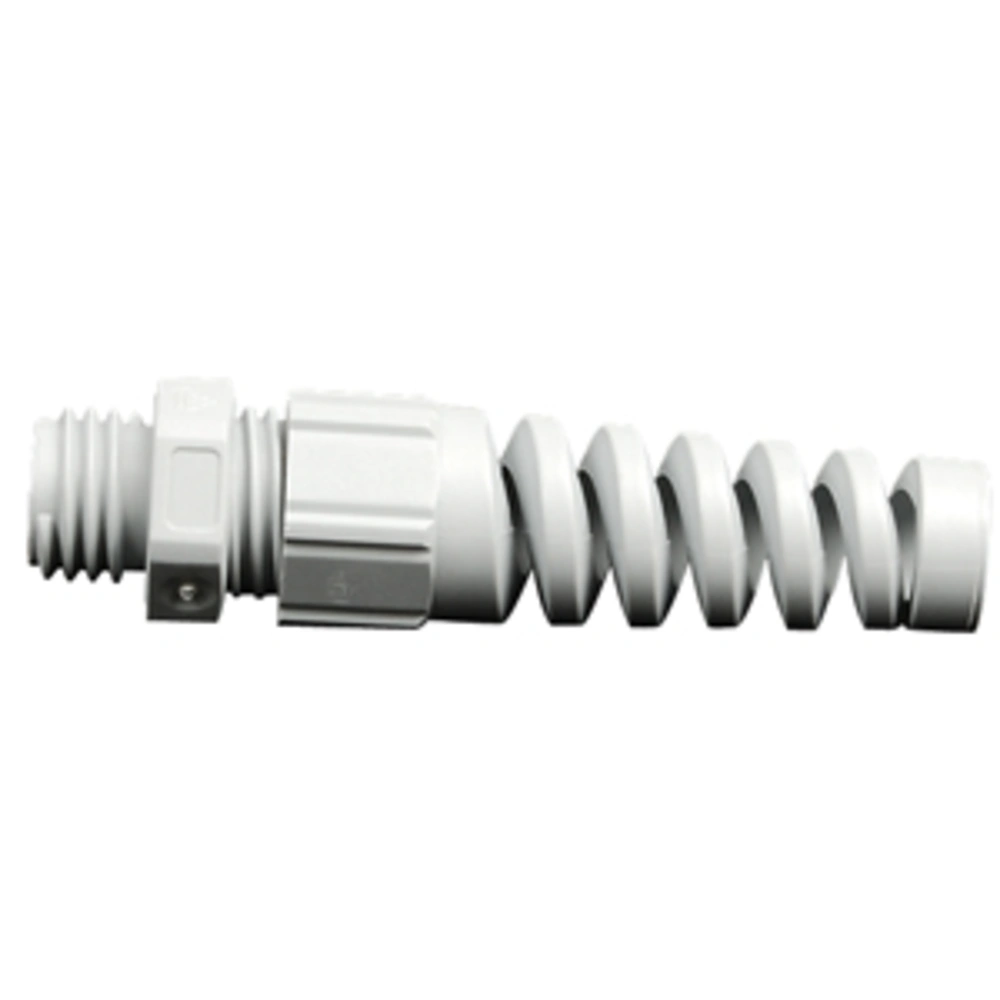 Cable gland with bending protection to connect a cable to electrical appliances and machinery that are moved during normal use. The line attached in accordance with VDE 0730 protects the connection and cable against excessive bending.
