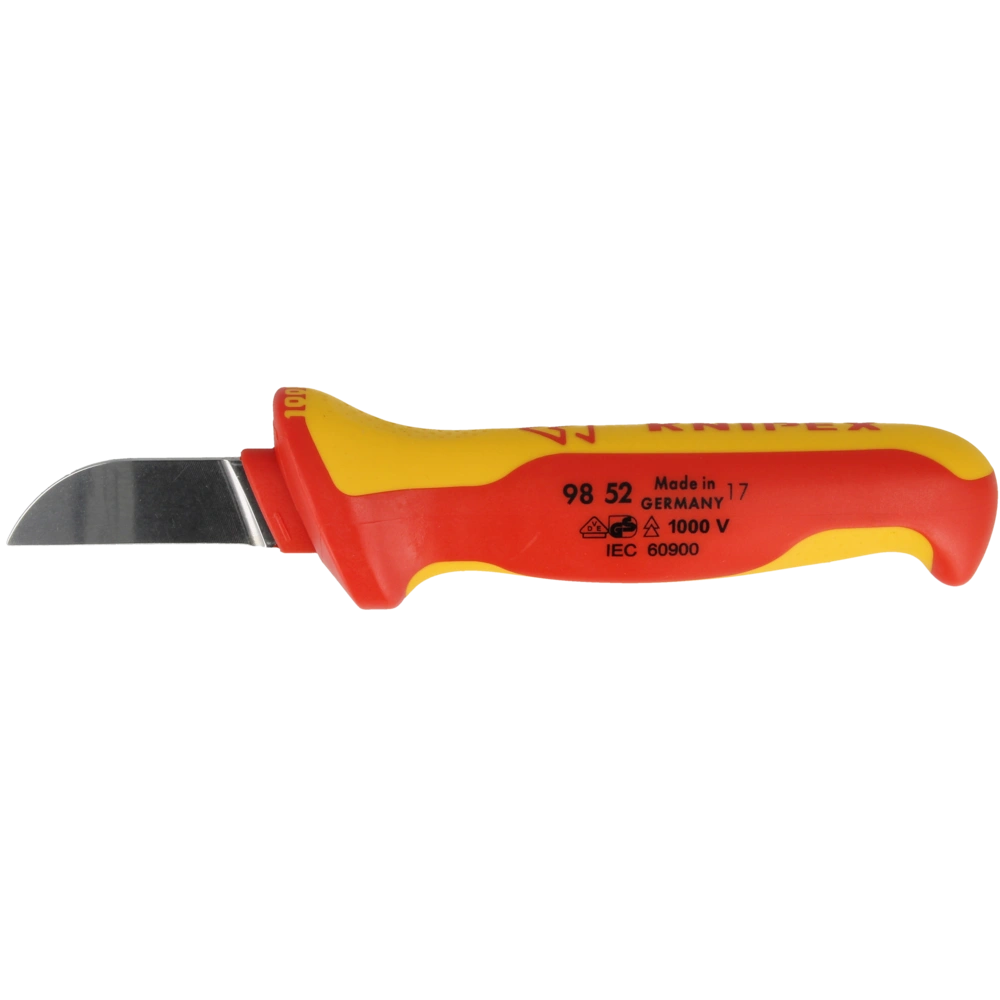 All product informationThe cable knife features improved ergonomics. The non-slip handle is fitted with a thumb recess and "finger hook" at the end of the handle to ensure a good transmission of force when the blade is pulled. The blade is made of special tool steel, supplied with a protective cap.