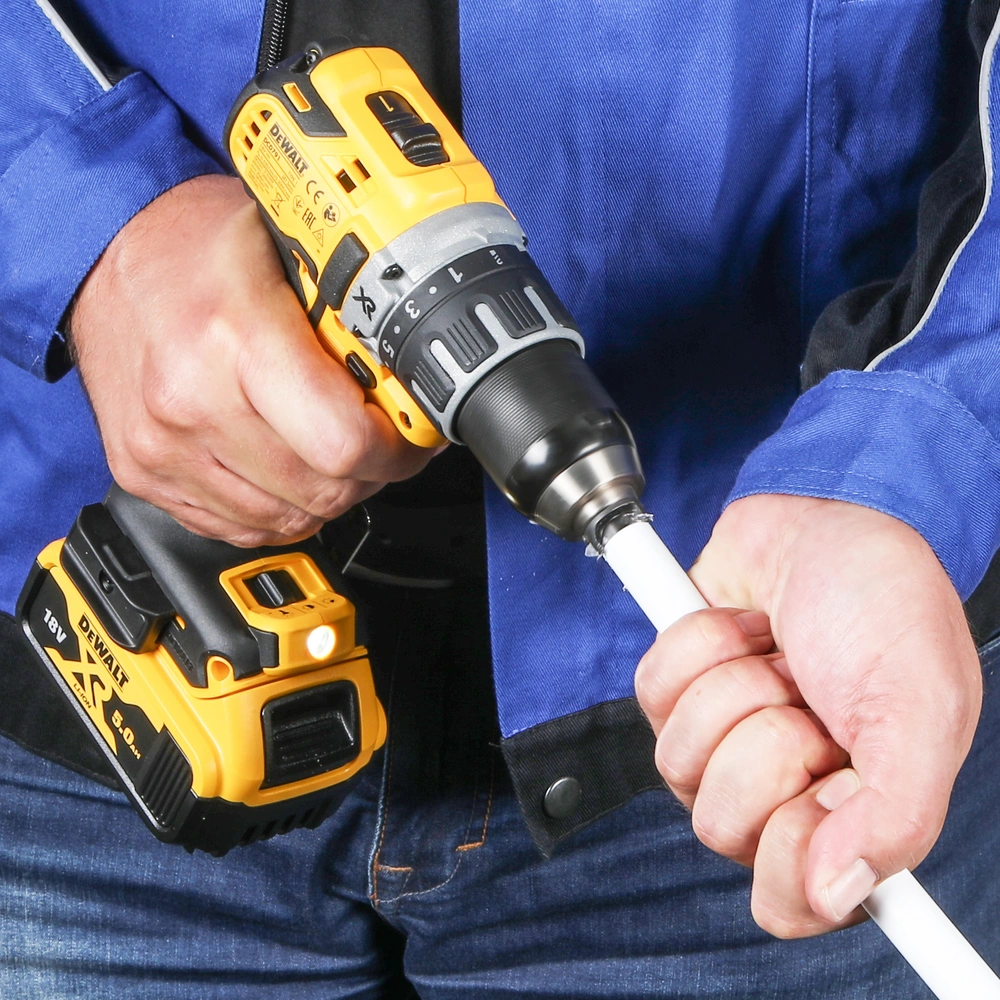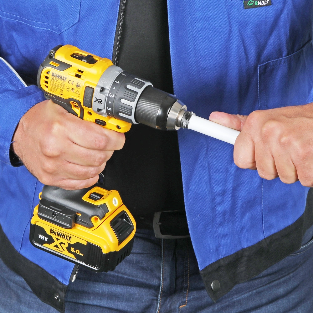 The OEG calibration tool for composite pipes can chamfer the pipe in a single working process on the inside, outside and at the front. Additionally, the internal diameter is calibrated for further processing. It could not be more simple! With hexagon drive for professional use in a cordless screwdriver.