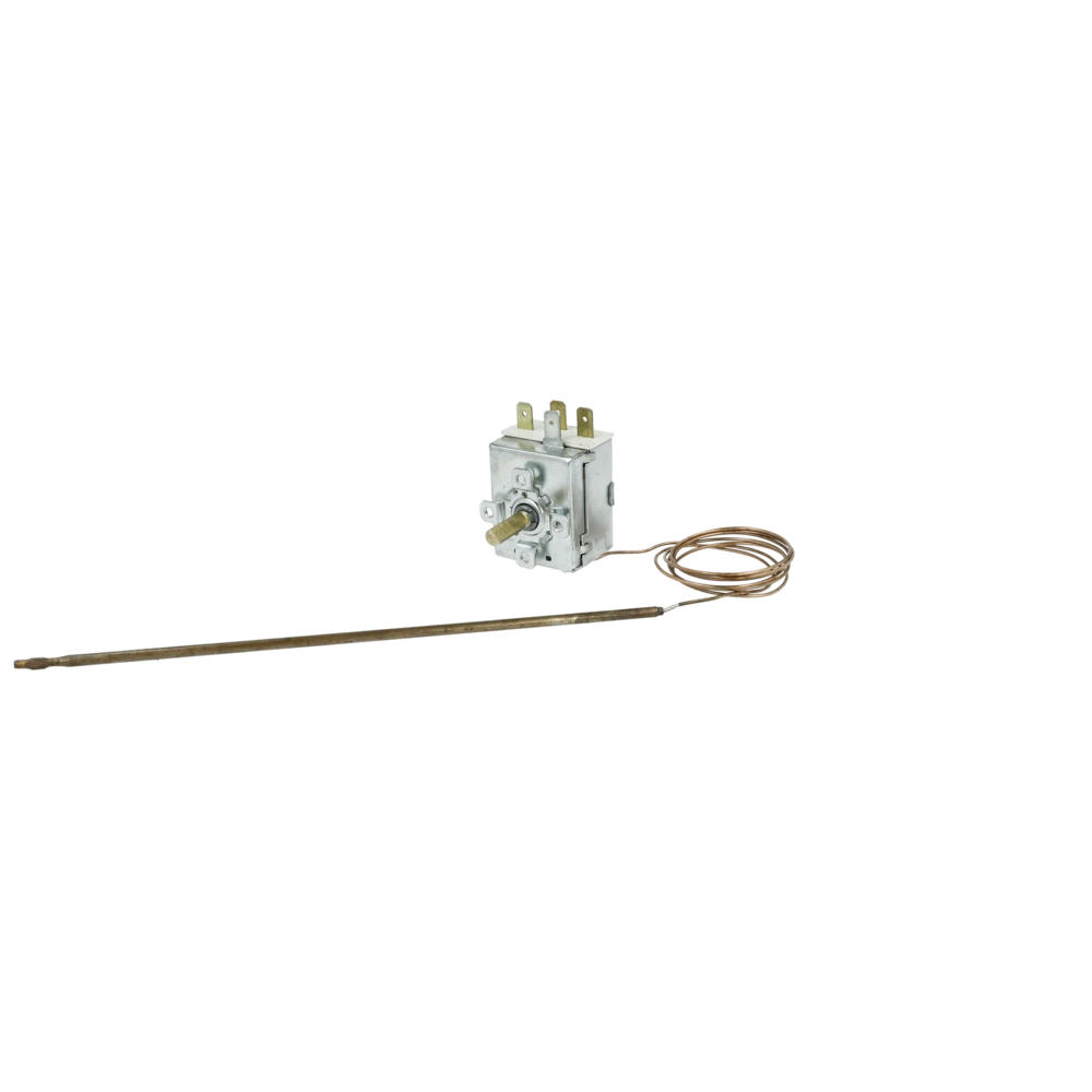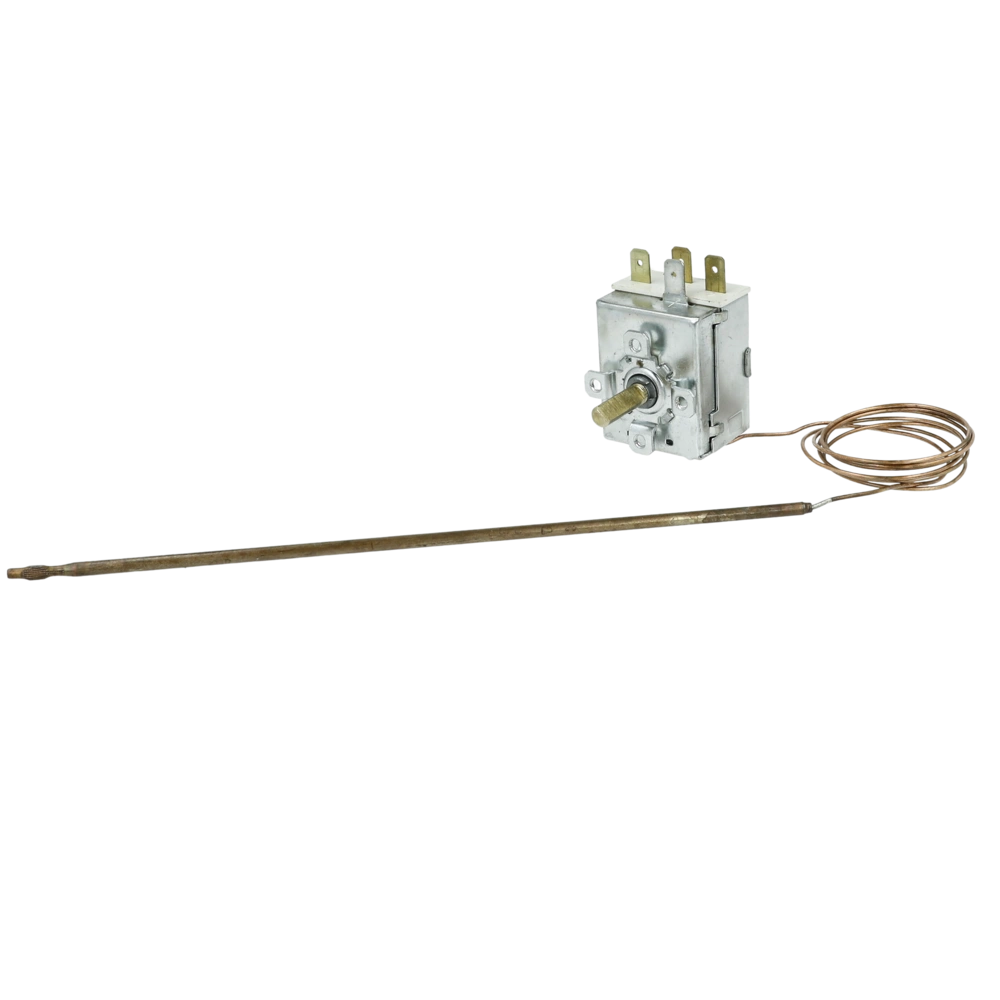 Thermostat for switch panel mounting with rotary knob operation. The controller is suitable for extremely high temperatures.