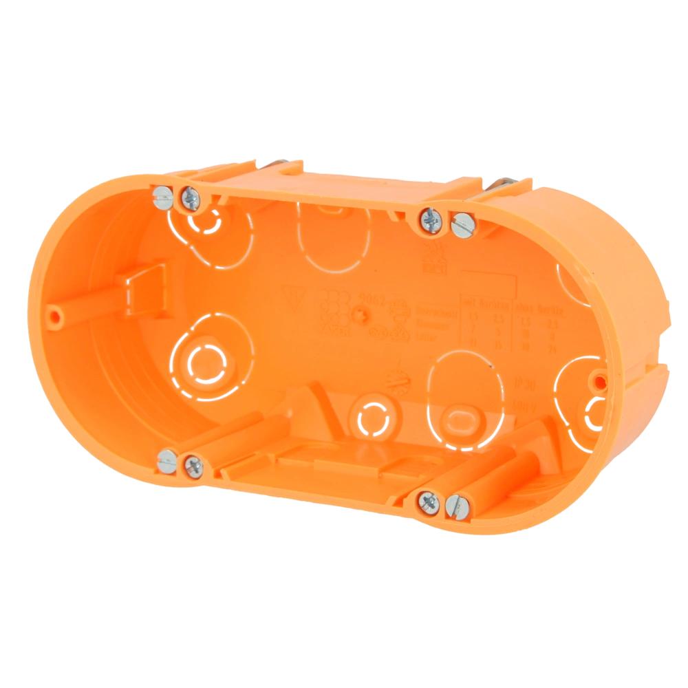 All product informationThis cavity junction box by Kaiser is suitable for almost any cable thickness. The cable entries can be individually adjusted by breaking them out. The box can be used for either 2 electrical inserts or 1 block insert. It is also suitable as a junction box.