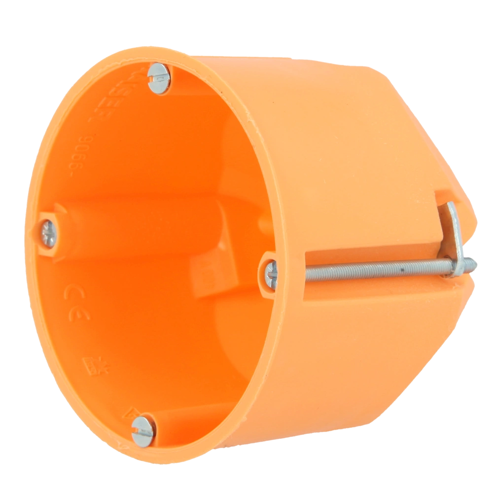 Airtight cavity wall installation box with holding ring and connection pieces.