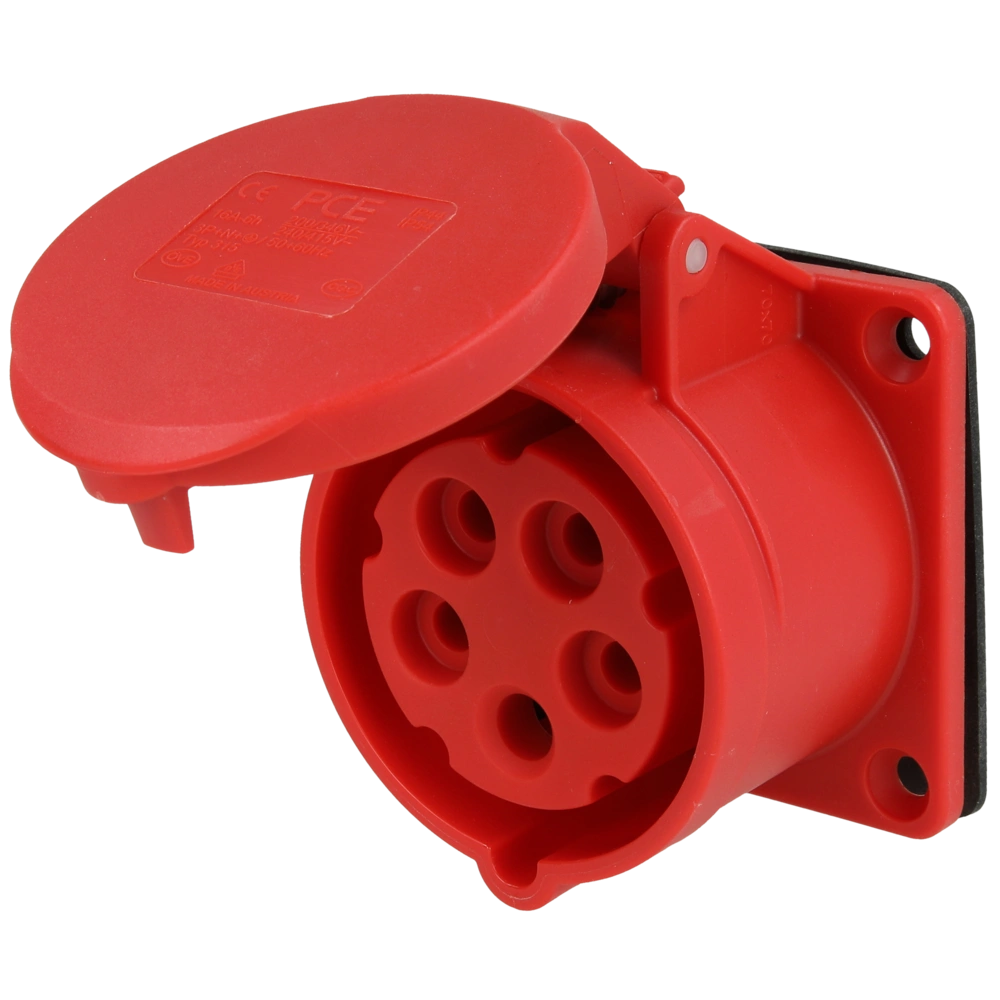 Flanged socket with neutral conductor and earth contact. The large contact surfaces are designed for consistently high current load. With screwed terminals for quick and easy cable connection.