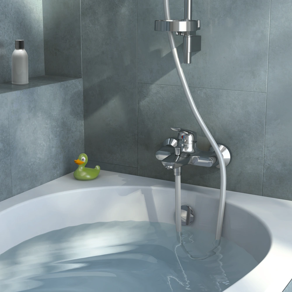 Single-lever bath mixer for exposed installation. The insulated IdealPure® waterways are nickel- and lead-free and reduce water and energy consumption. The mixer is also equipped with an integrated hot water temperature limiter and ECO function. Automatic diversion from shower to bath.
