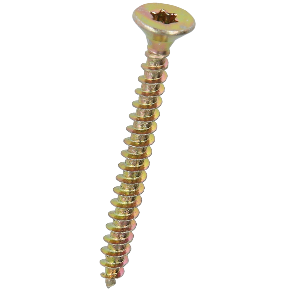 Galvanised steel countersunk screw with full thread for universal use in hardwood, chipboards, plastics and other materials.