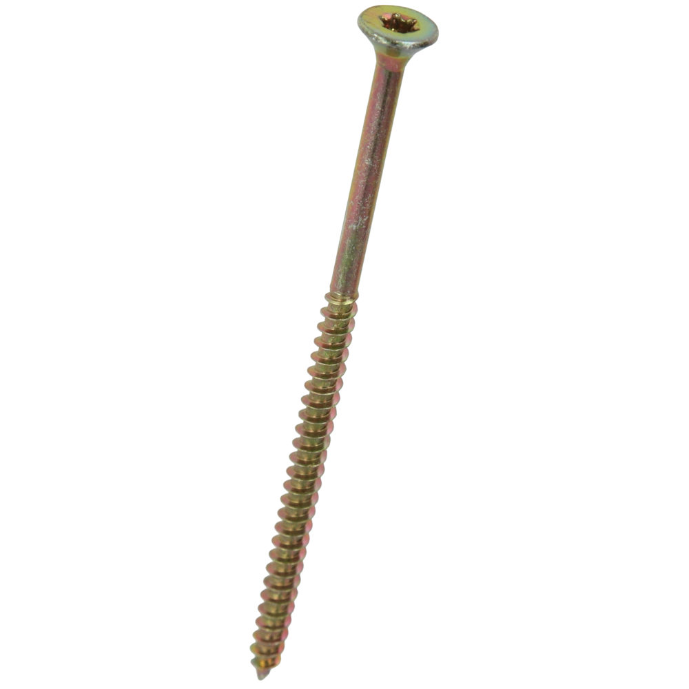 Zinc-plated steel countersunk screw with partial thread for universal use in hardwood, chipboard, plastics and other materials.