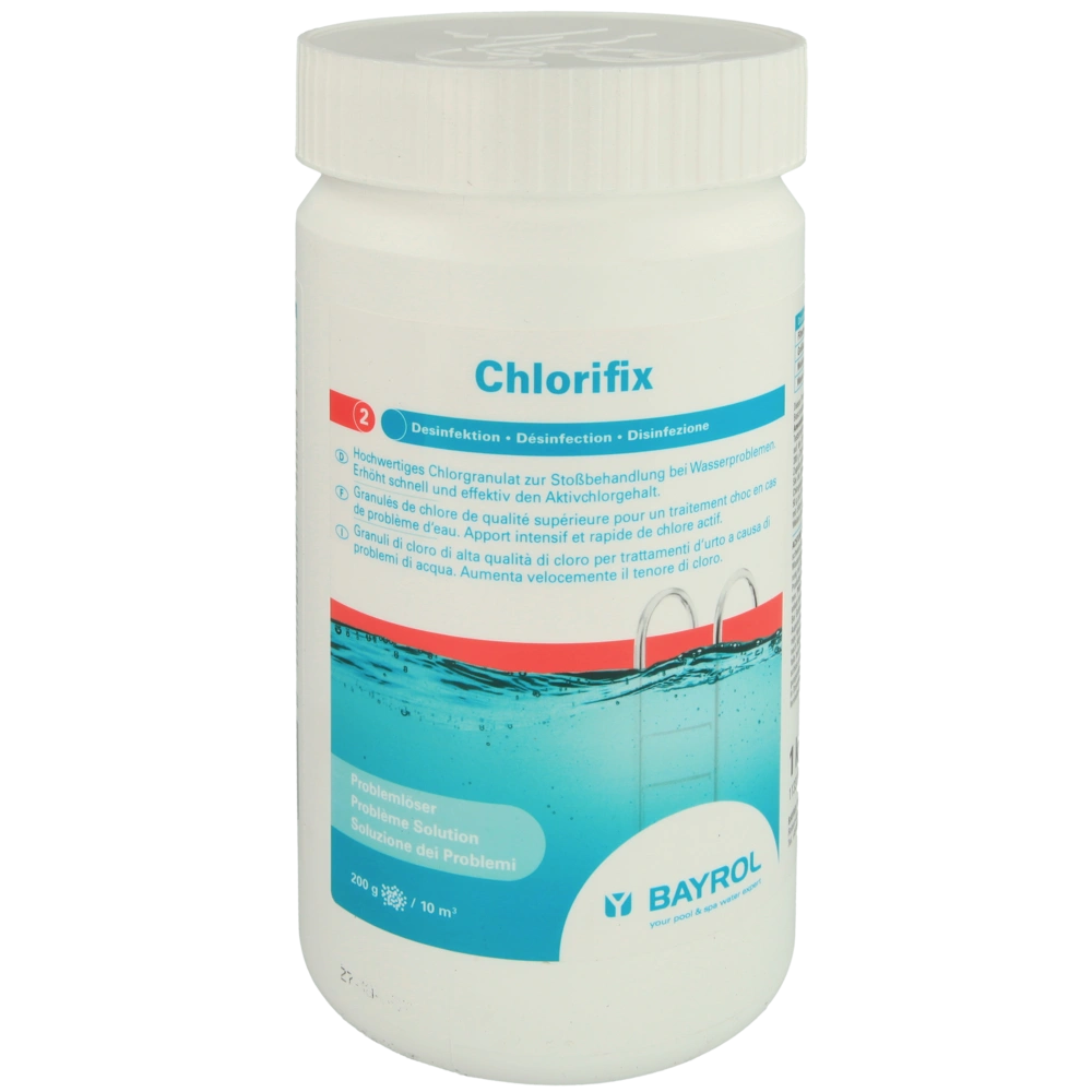 Chlorifix is a granulate for quick treatment of water problems. It is used e.g. when water is full of algae or turbid. The fast-dissolving micro-pellets with high-active chlorine content are used for additional and quick disinfection...