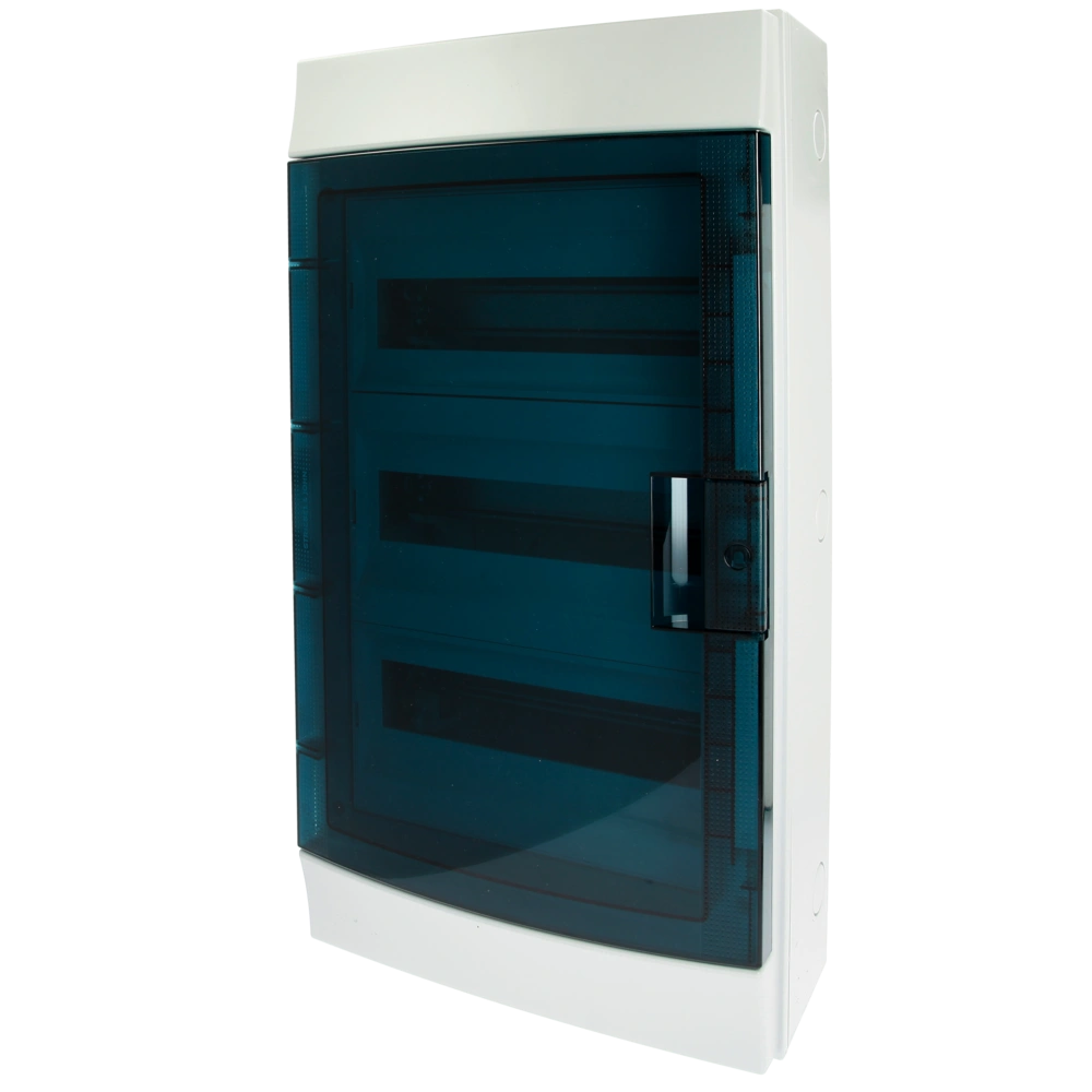 All product informationThe circuit distributor for indoor use is equipped with a hinged door optionally on the left or on the right. The transparent door has one wing and can be sealed. The cable entry is possible on the top, at the bottom or on the side by means of sections that can be knocked out. The distributor also features captive screws.