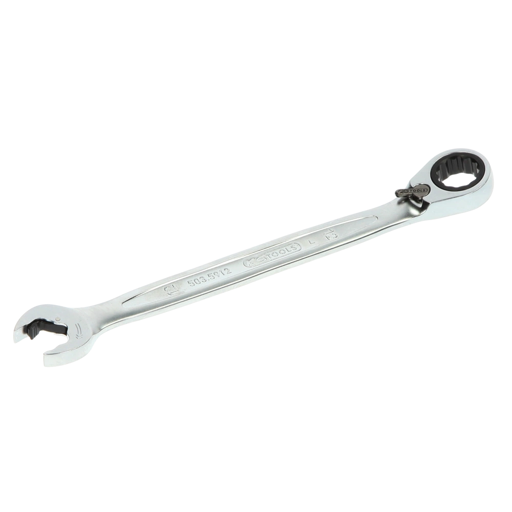 The combination spanners with FlankTraction profile have a ratchet mechanism in ring and open jaw. The ratchets are equipped with 72 teeth and reversible. Both sides are 15° offset.