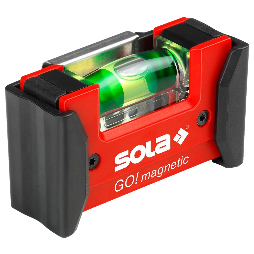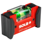 All product informationThe SOLA compact spirit level GO! is equipped with a neodymium magnet providing a high adhesion force. The measuring surface with practical V- groove is perfect for levelling pipes. The manufacturer grants a 30-year tightness guarantee on the break-resistant acrylic block vial with magnifying lens (+60%). The compact and lightweight spirit level has a robust steel belt clip so that it is right at hand.