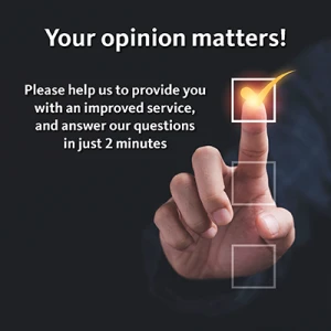 Please take part in our online survey. It'll only take 2 minutes and will help us to understand what is important to you and where we can improve. Take part in now!