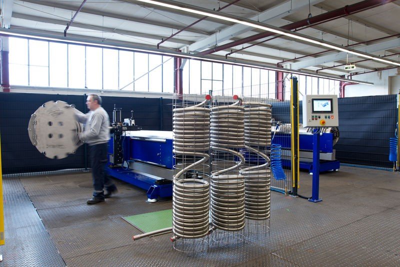 All important and interesting production steps were presented live: From the automated wiring of the corrugated stainless steel pipe and the heat exchangers, over plasma cutters and welding stations up to foaming the high-quality insulation.