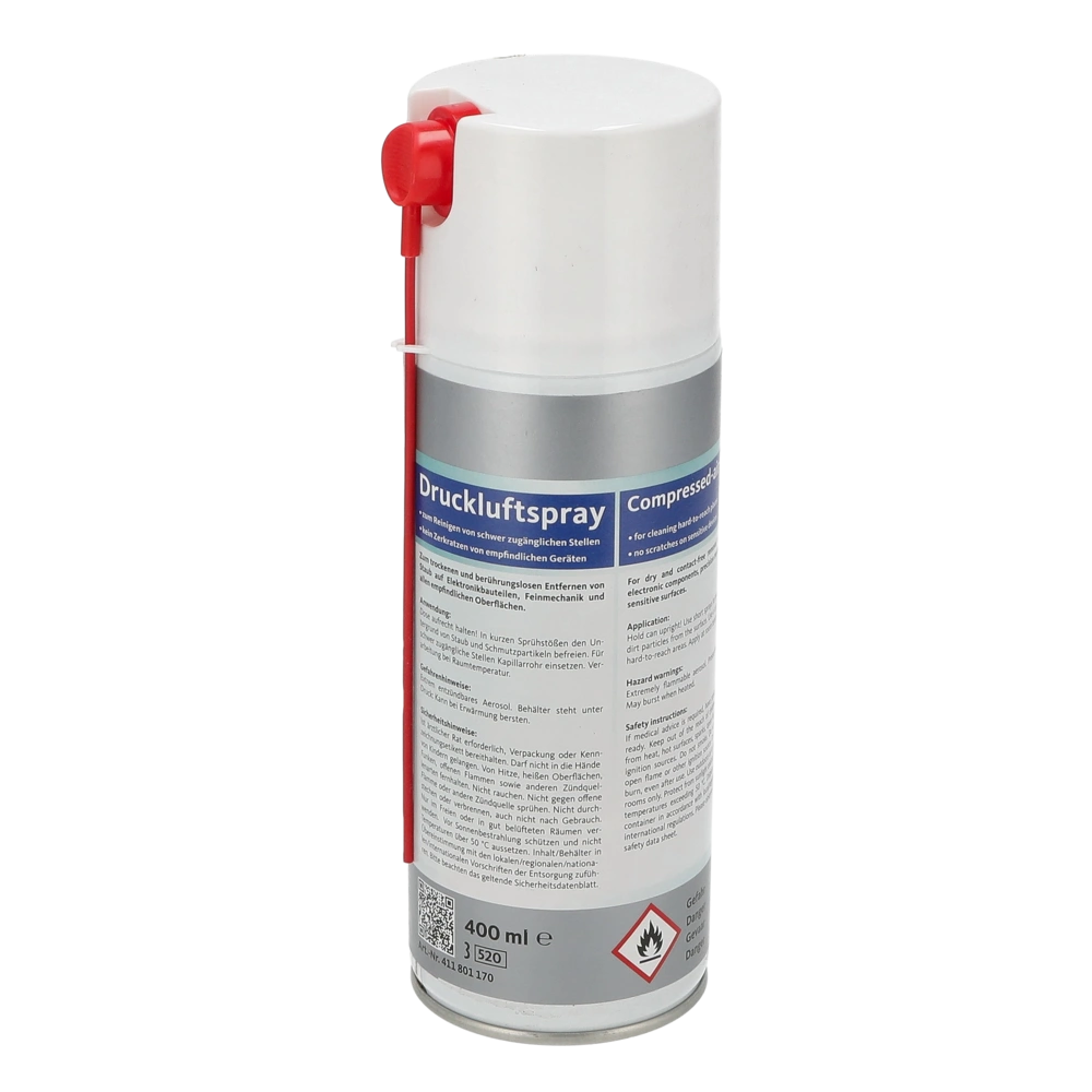 This compressed-air spray is excellently suitable for dusting off and cleaning inaccessible spots at computer systems, photo cameras, heating systems and other machines and devices. This easy-to-dose spray is also suitable for sensitive devices and can also be used on live parts.