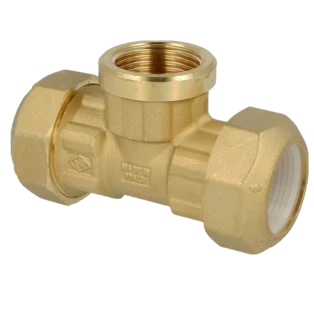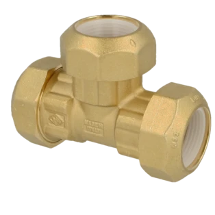 Brass compression fittings with a resin compression ring for the connection of PE and PVC pipes. The fittings can be used in drinking water installations without hesitation.