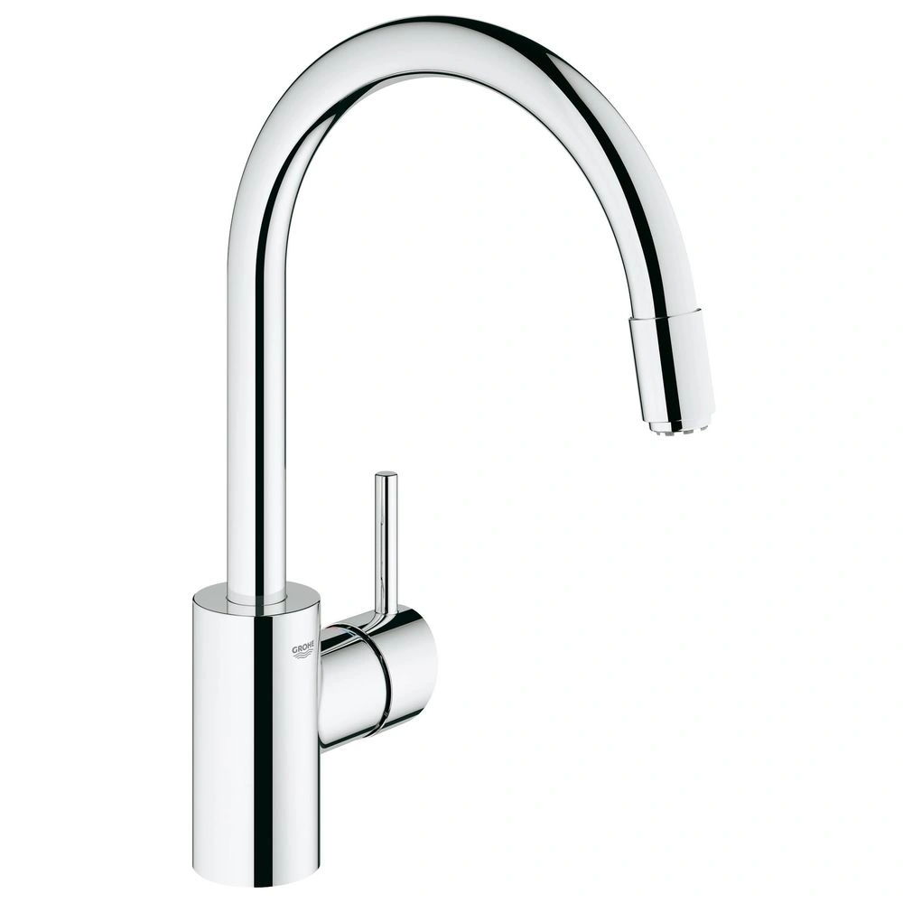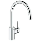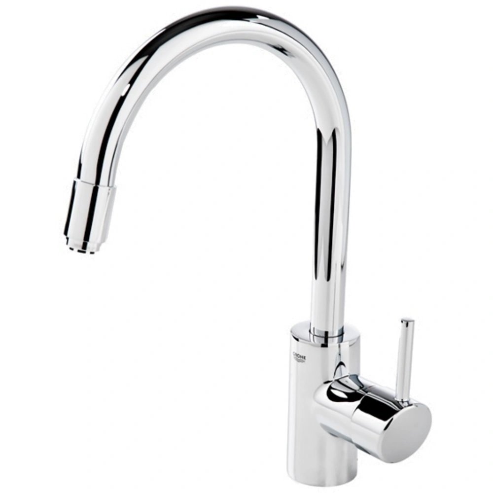 Single-lever kitchen fitting for monobloc installation. The low-pressure tap has a GROHE 35 mm SilkMove® ceramic cartridge, a variably adjustable flow rate limiter and a high spout that can be swivelled by 360°. The pull-out laminar spray is equipped with automatic retraction. The GROHE EcoJoy® flow rate limiter saves up to 50 % of water, and the GROHE Zero® technology provides isolated, inner waterways for lead- and nickel-free drinking water. The GROHE StarLight® chrome finish is easy to clean, hygienic and scratch-resistant. With the GROHE FastFixation® installation system and the flexible connection hoses the tap can be fitted quickly and easily. It is intrinsically safe against backflow.