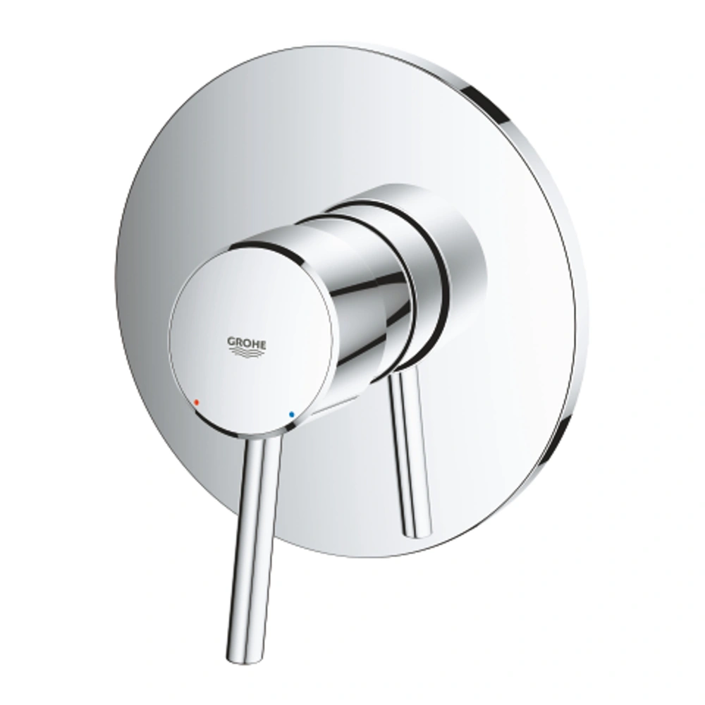 Single-lever shower tap with final installation set for Rapido SmartBox for concealed installation. The high-pressure tap has a GROHE 46 mm SilkMove® ceramic cartridge. The metal wall escutcheon can be quickly and easily installed with the GROHE FastFixation® system and be subsequently aligned by 6°. The GROHE StarLight® chrome finish is easy to clean, hygienic and scratch-resistant.