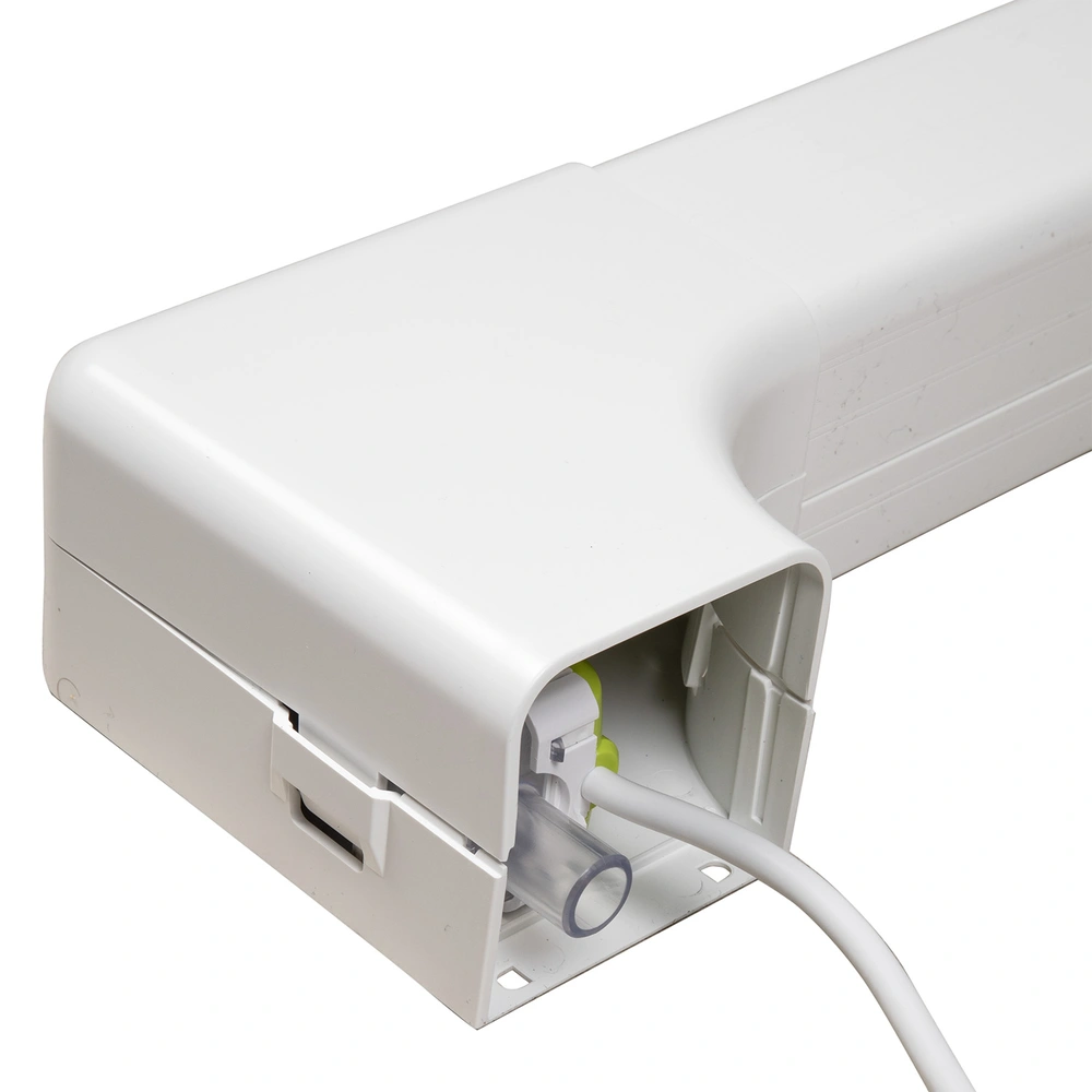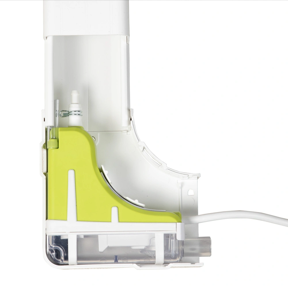 Mini condensate removal pump in trunking elbow for air-conditioning units. The slim design offers many installation options where space is limited. The latest technologies ensure an impressive flow rate with low power consumption and low noise levels. Particularly in rooms such as bedrooms and offices, where quiet is required, the pump is virtually silent - you hear nothing. You can hear a volume example in the video.