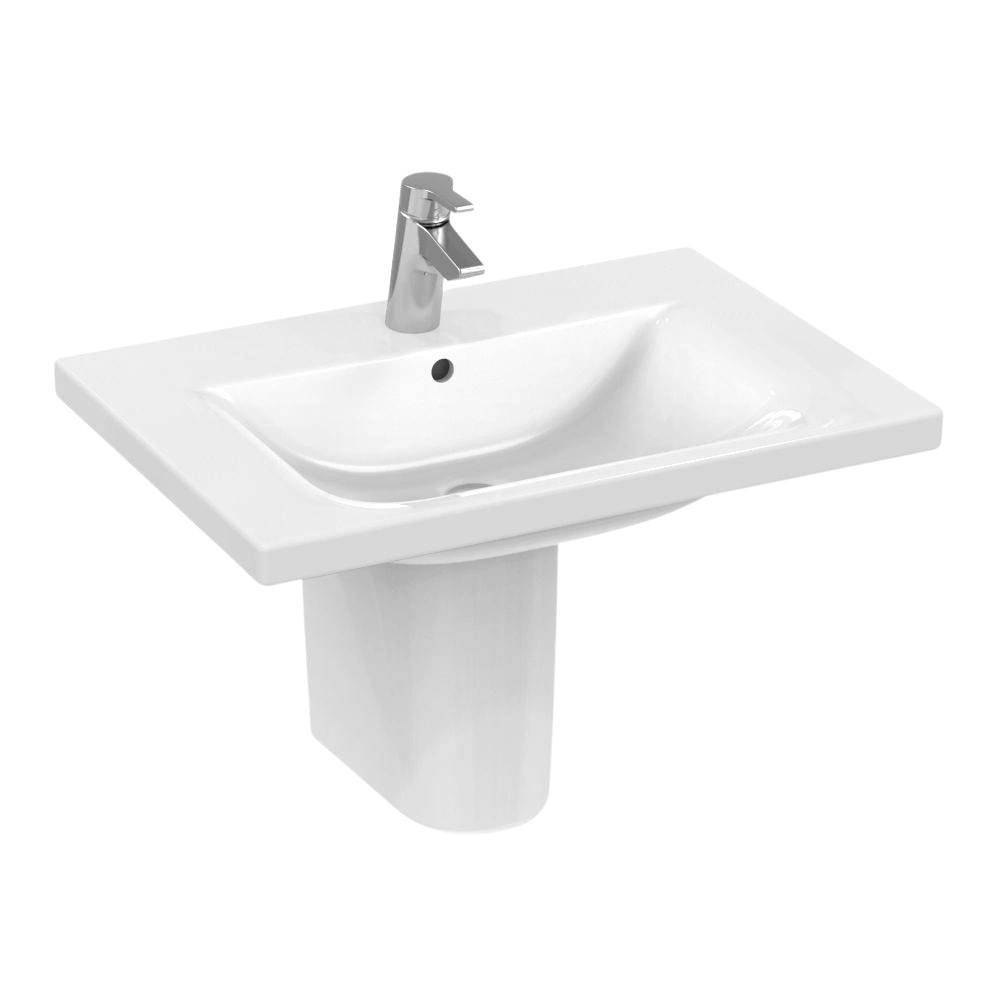 Washbasin made of fine fireclay with an overflow hole and tap hole in the centre and lateral shelves.