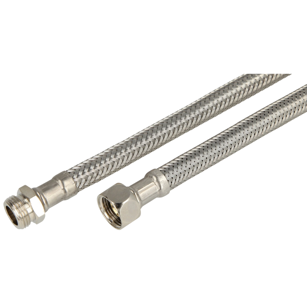 die Umflechtung besteht aus Edelstahl, Arbeitsbereich: bis 10 bar geeignet