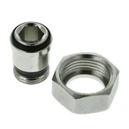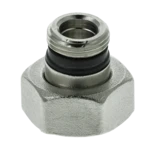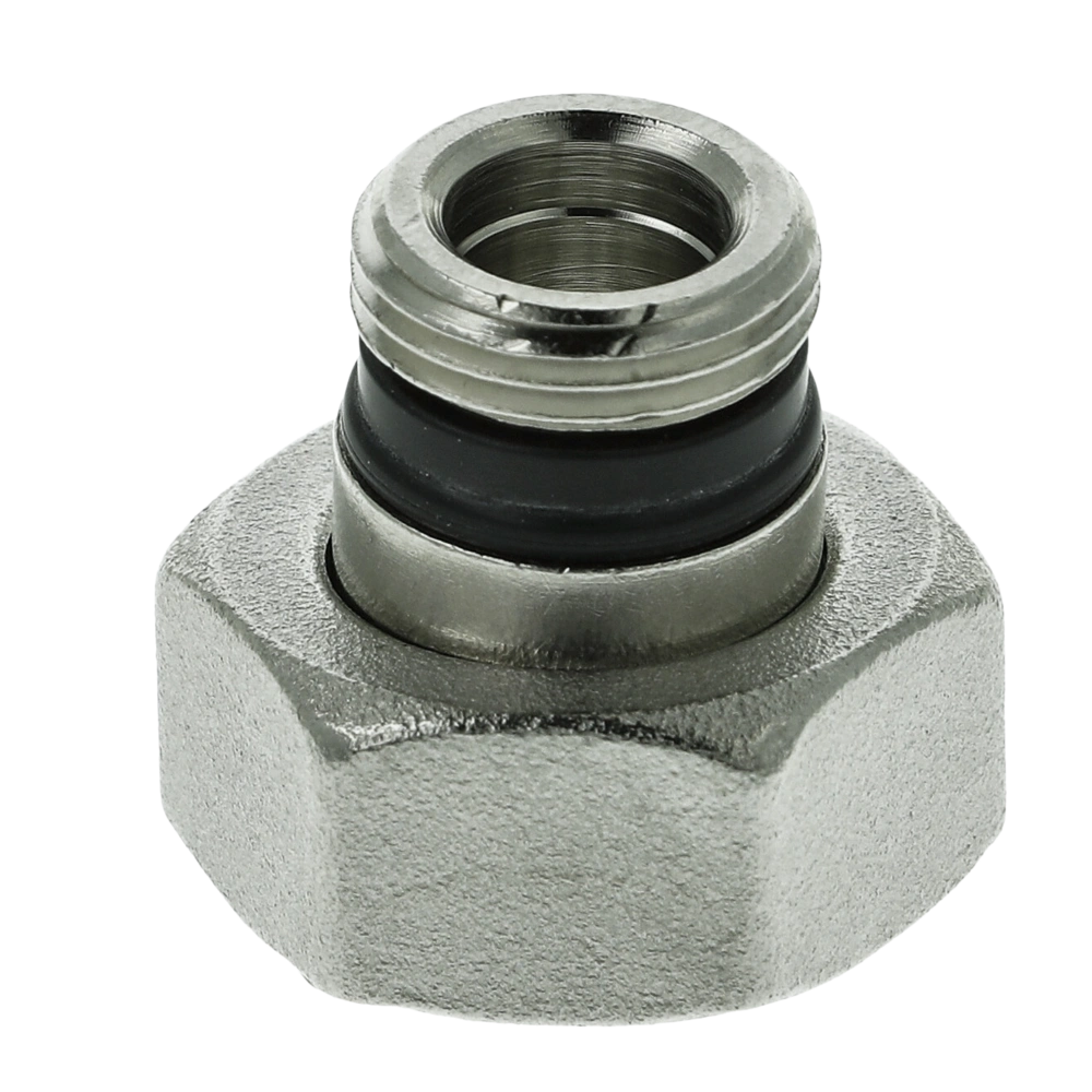 Fitting with union nut for radiator valves. Self-sealing, in heavy version for brand valves and return lockshields.