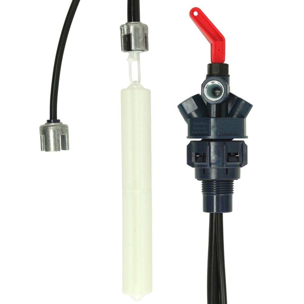 Euroflex is a plastic combination fitting as a withdrawal system with measuring line and German TÜV-tested isolating piece for screwing into the tank. The connection of the suction and the return line is via stainless steel screwed pipe connections G 3/8". Euroflex also has universal compression fittings for pipes with external diameters of 8 and 10 mm. The integrated check valve with elastic valve seat prevents the oil column in the suction line from being interrupted during burner standstill times. The quick-action shut-off valve has a toggle lever for remote closing in emergency situations.