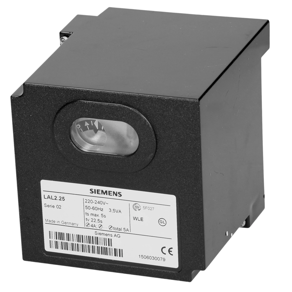 Oil burner control unit for the control and monitoring of oil burners with air pressure supervision, especially for intermittent operation at unlimited capacitry above 30 kg of oil per hour.