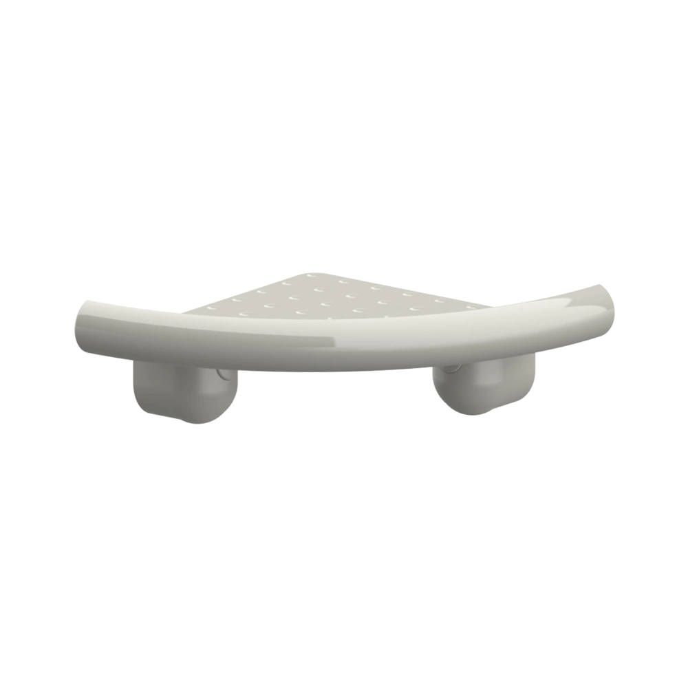 Corner shelf made of nylon with water drain at the rear and additional drain hole. For cleaning purposes, the top is removable without the need for tools.