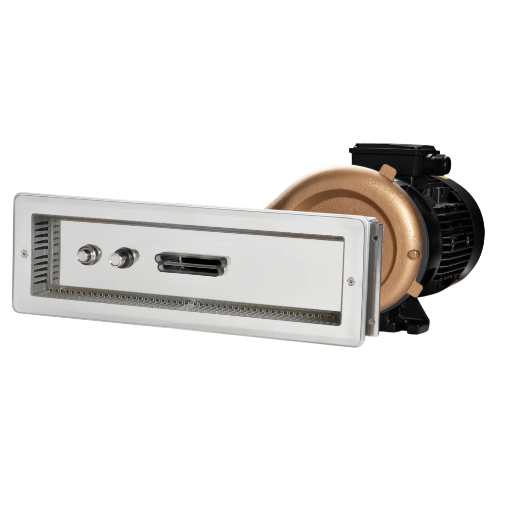 All product information Scope of deliveryCounter current unit for concrete pools. Innovative flow technique with two nozzles above each other. The unit can be started by pushbutton on the front side. The even distribution of the jet streams allows for natural swimming movements like in open waters. The air-water mixture in the jet stream can be adjusted seamlessly. The unit is suitable for daily fitness training and light strength training. The stainless steel Jet Swim Motion model with a bronze pump body is completely supplied with preassembly and final assembly kit.