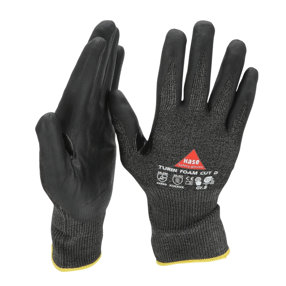 Work gloves with cut protection level D and secure grip thanks to the robust nitrile foam coating. The reinforced thumb provides additional durability, while contact heat protection and touch function increase the gloves' versatility. OEKO-TEX®-certified, without steel or glass fibres, skin-friendly and washable - perfect for precise and safe working.