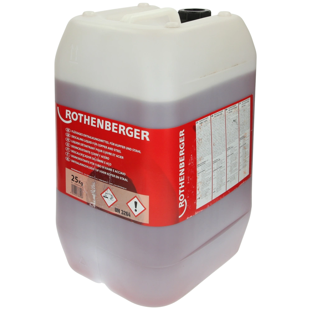 This concentrate is suitable for decalcifying heating systems and heat exchangers with copper and iron pipes. It is non-foaming with corrosion protection. Chemicals change colour with use: active product is red, used product is yellow orange. The dilution in water is 10 to 30%.