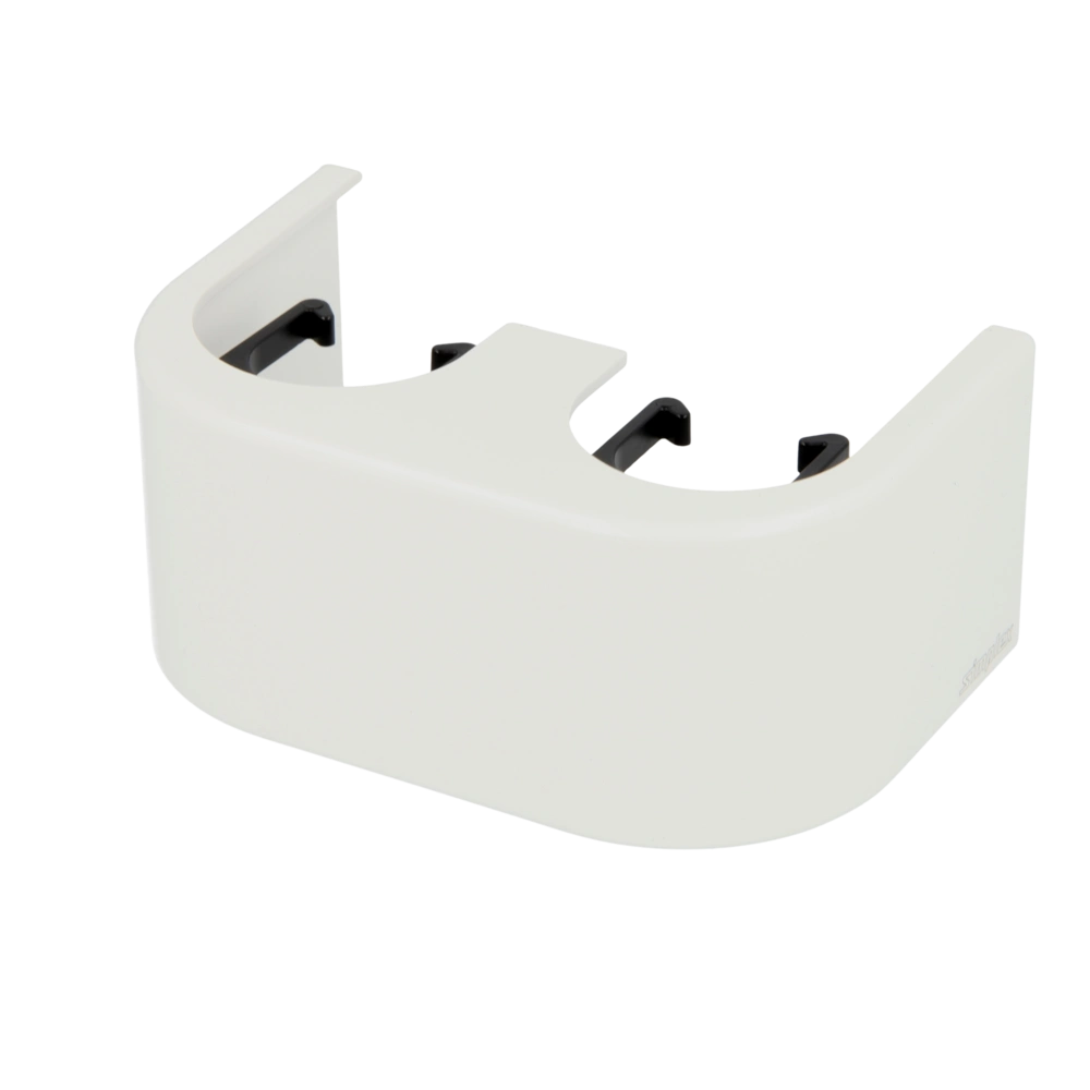 All product informationDesign cover in white for two-pipe H-modules with an axial distance of 50 mm. It is made of high-quality plastic in high-gloss look. Simple assembly and disassembly is ensures thanks to clip-on mechanism.