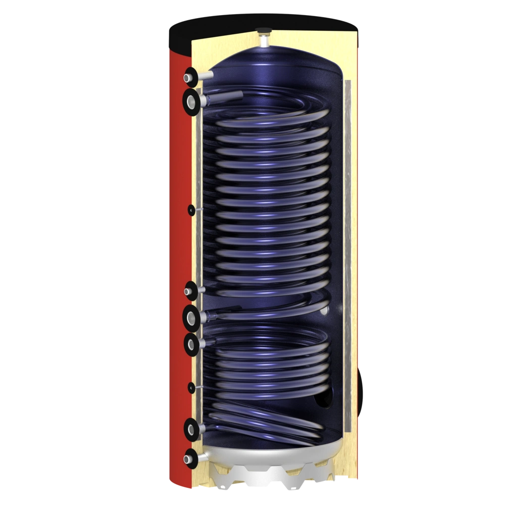 All product informationPremium DHW storage tank with particularly large, double heat exchanger coil for high heat transfer in combination with heat pumps and an additional coil for an alternative heat generator.