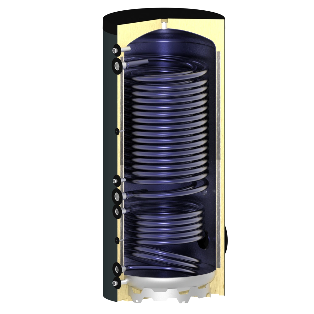 All product informationPremium DHW storage tank with particularly large, double heat exchanger coil for high heat transfer in combination with heat pumps and an additional coil for an alternative heat generator.
