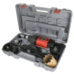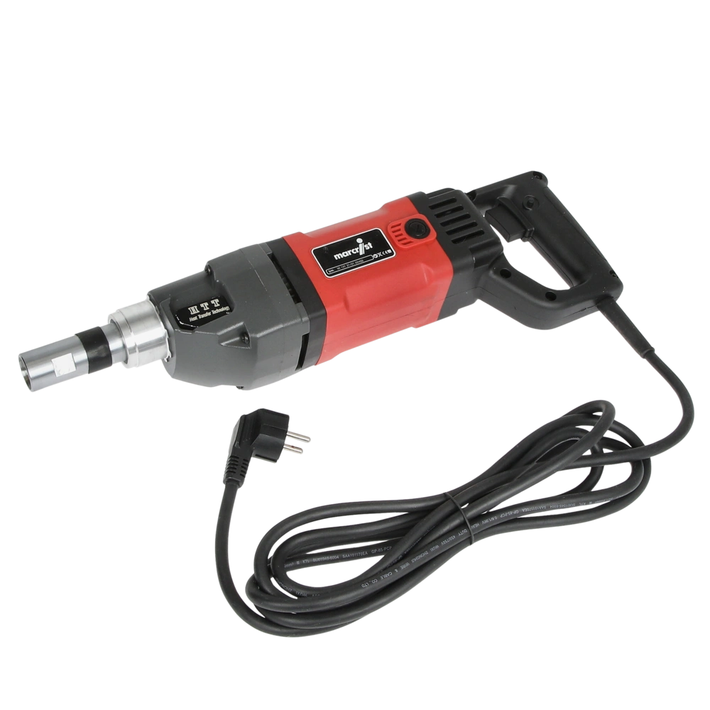 Robust core drilling machine for dry core drill bits. The manually operated machine with soft start has a safety slip clutch and electronic overload protection. The core drill bit is ideal for drillling switch boxes. Via the 1/2" arbor, other core drill bits can be combined. The dust protection adaptor is used for the connection of a vacuum cleaner.