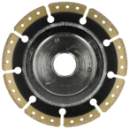 Diamond cutting and chamfering blade for cutting cast iron, clay and plastic materials. The blade is resistant against high heat, with low vibration and has a hardened and armoured steel core. It is also self-cooling and self-sharpening.