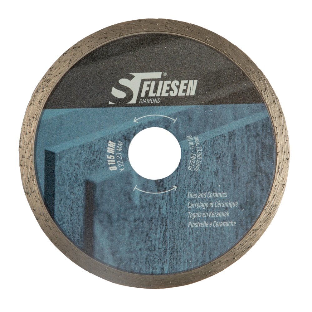 High-quality diamond cutting blade for daily use in wet and dry cutting. The sintered blade with continuous rim cuts quickly and cleanly through tiles, ceramics and thin marble and granite slabs.