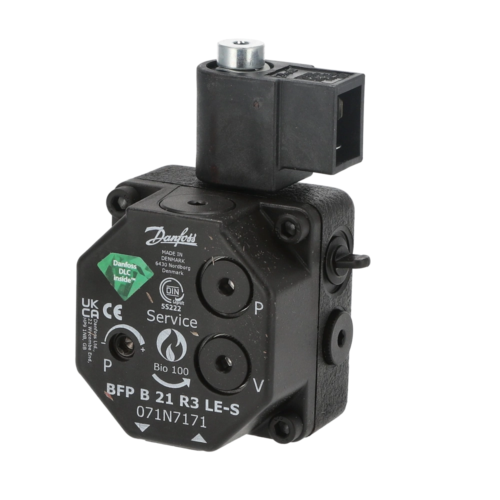 All product informationSingle-stage service oil burner pump with pressure-regulating valve and shut-off function. The oi burner pump is suitable for biodiesel, kerosene and heating oil EL. The heat-resistant diamond coil and DLC coating of the mechanically stressed components result in an extended service life and increased operating safety.