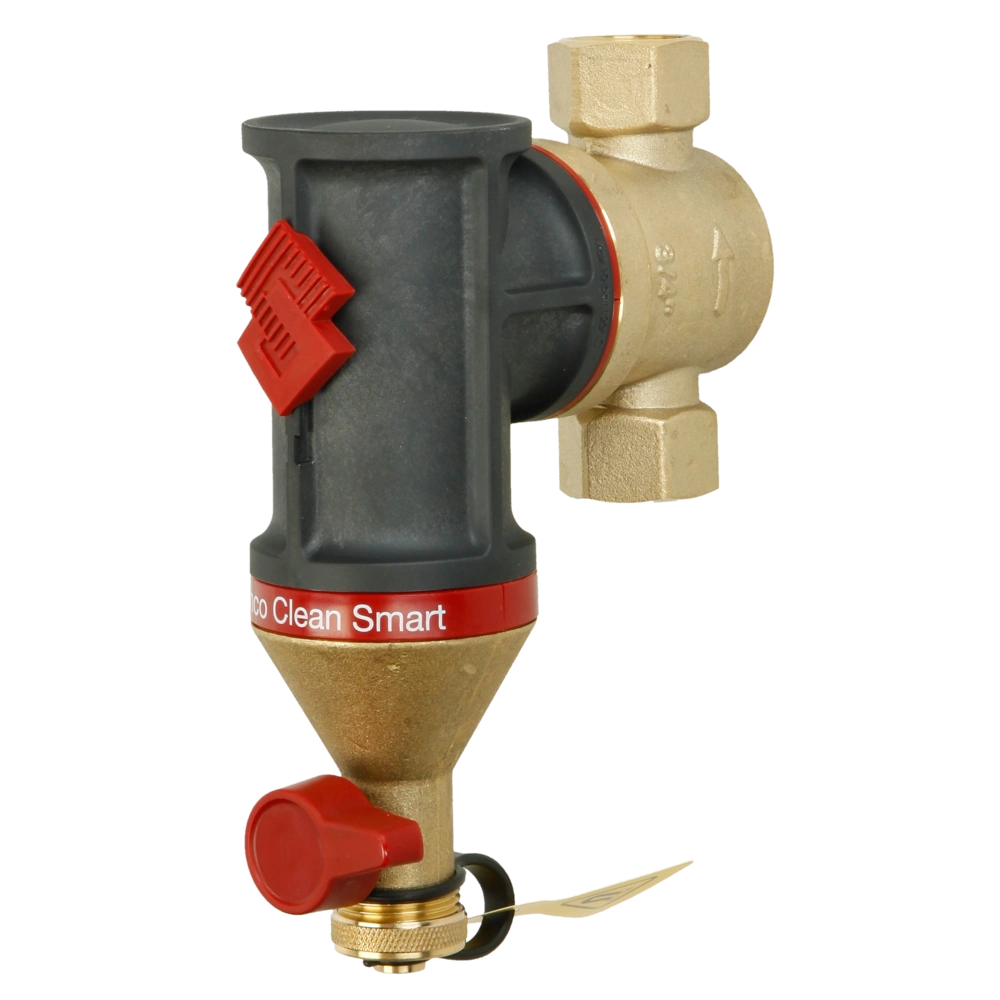 Compact dirt separator to remove the smallest dirt particles and magnetite particles from heating and cooling systems. The four particularly strong neodymium magnets provide for up to 60 % better results than conventional dirt separators while minimising the flow resistance at the same time.