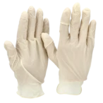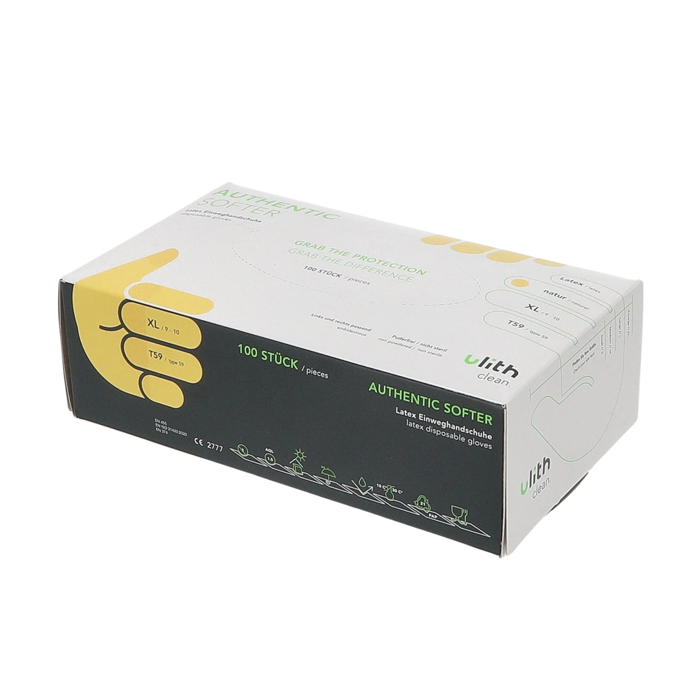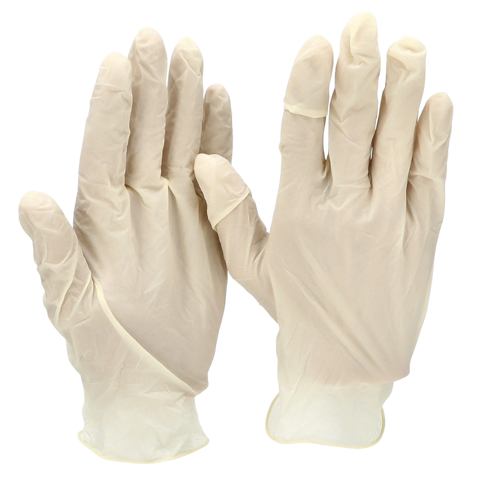 Disposable latex gloves. They are particularly tear-resistant, provide good dexterity and are suitable for food applications.