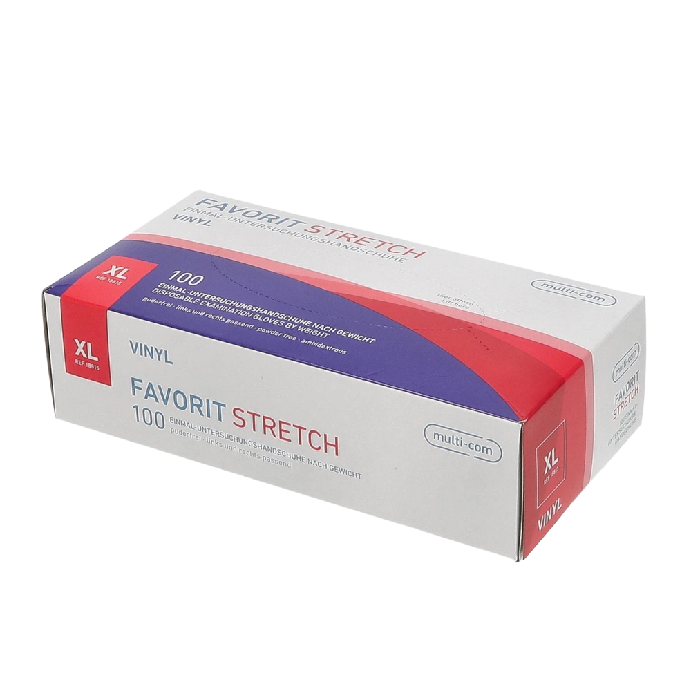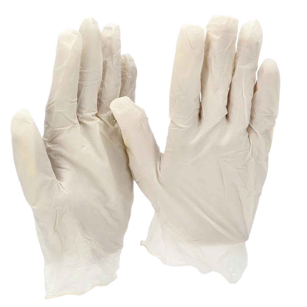 Disposable gloves made of vinyl for the protection against infections. The powder-free gloves can be worn from both sides. They are particularly tear-resistant and provide good dexterity. A short contact with lyes and acids is possible.