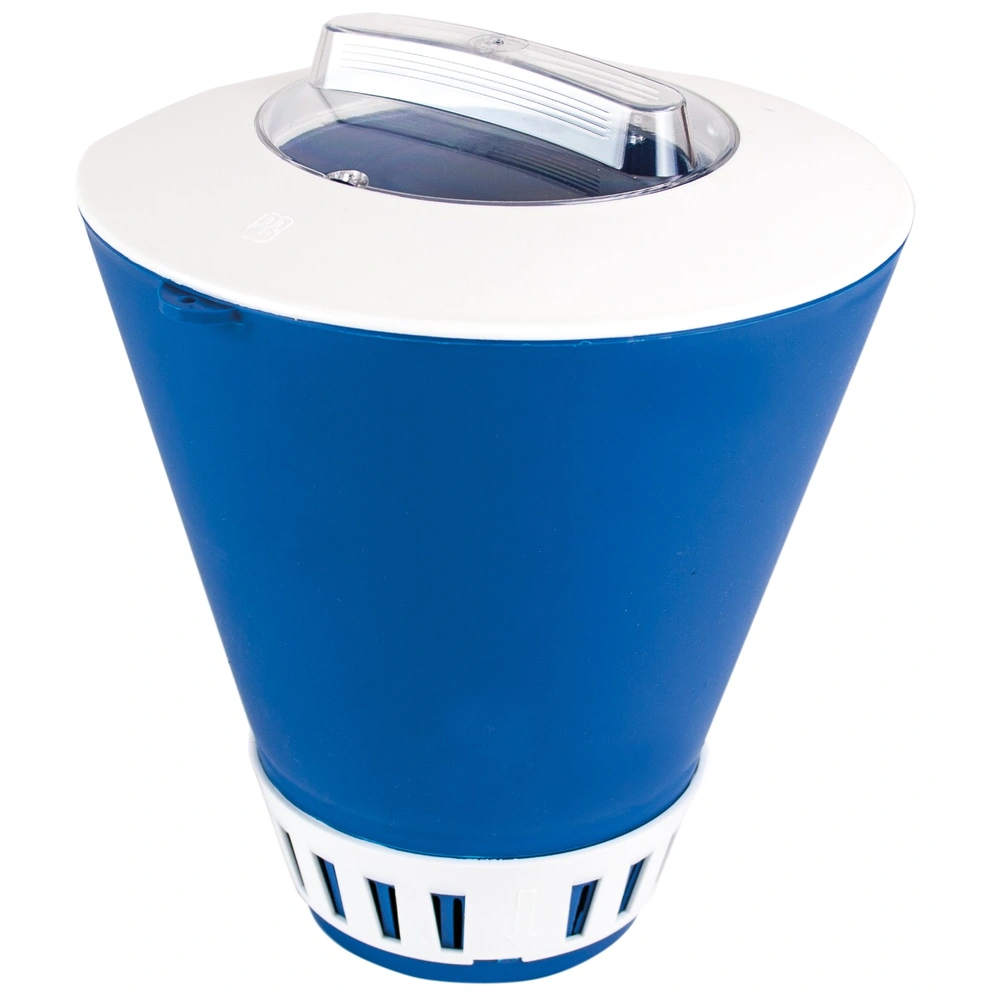 The dosage float with adjustment ring has a transparent lid and an opening of 95 mm. It can carry up to 1kg of chlorine tablets.