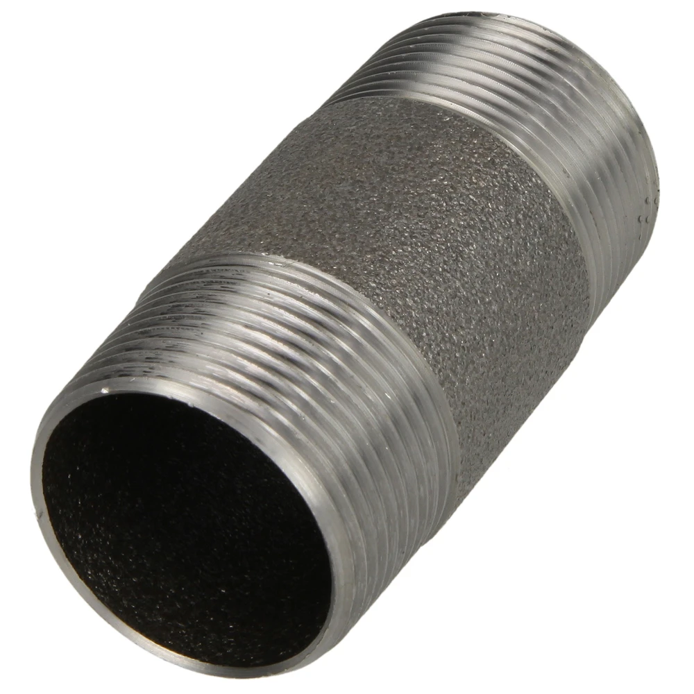 All product informationBlack double-threaded nipple made of malleable cast-iron with tapered thread for the connection of pipes in sanitary, heating and refrigeration systems.