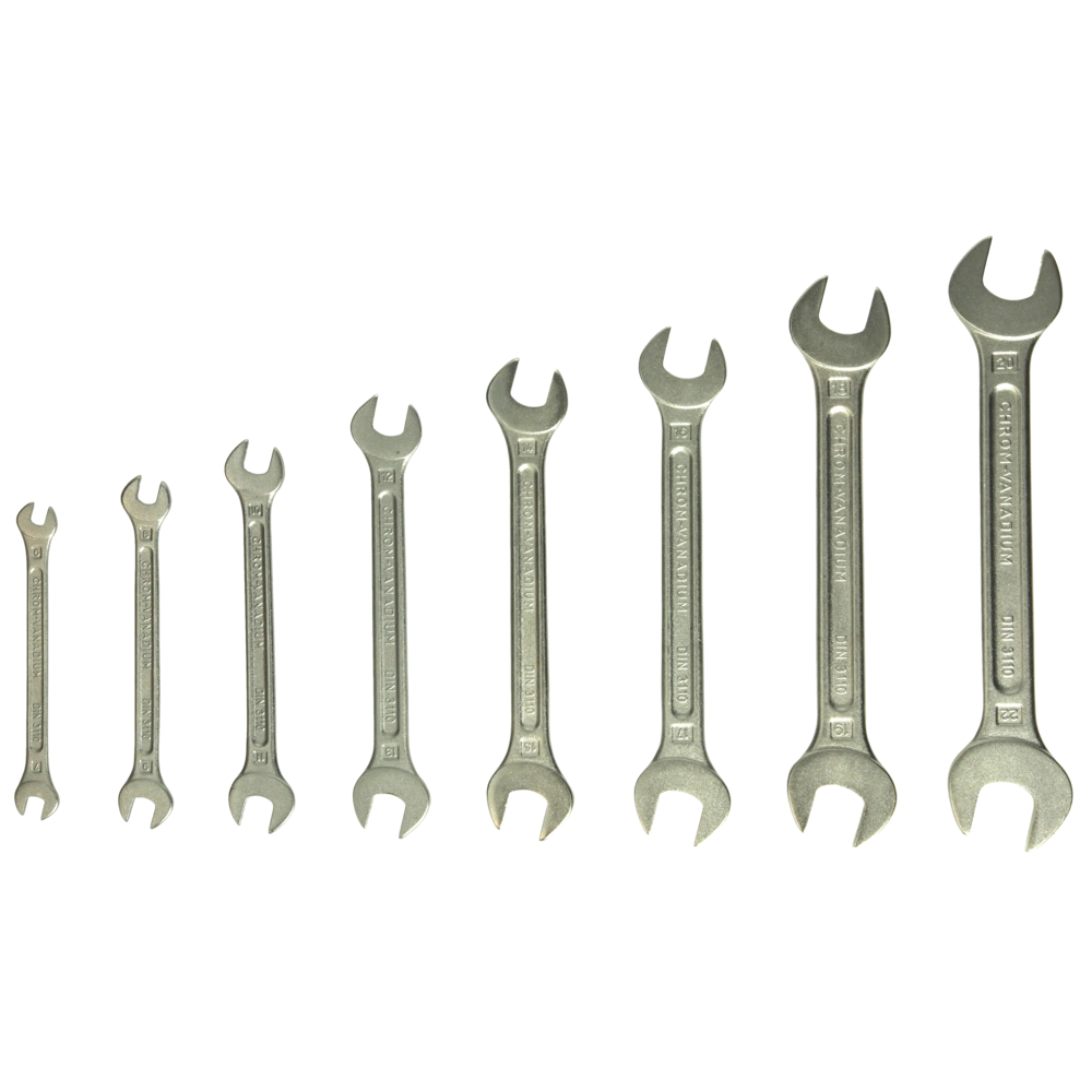 The 8-piece set has been assorted for practical purposes and is supplied in a cardboard box. That is how you quickly have the most needed double-ended open jaw wrenches at hand.