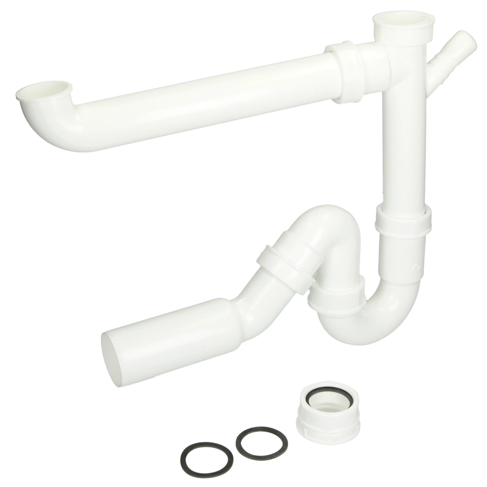 All product information Scope of deliveryDouble odour trap made of plastic with outlet pipe that can be inserted vertically or horizontally and one appliance connection.