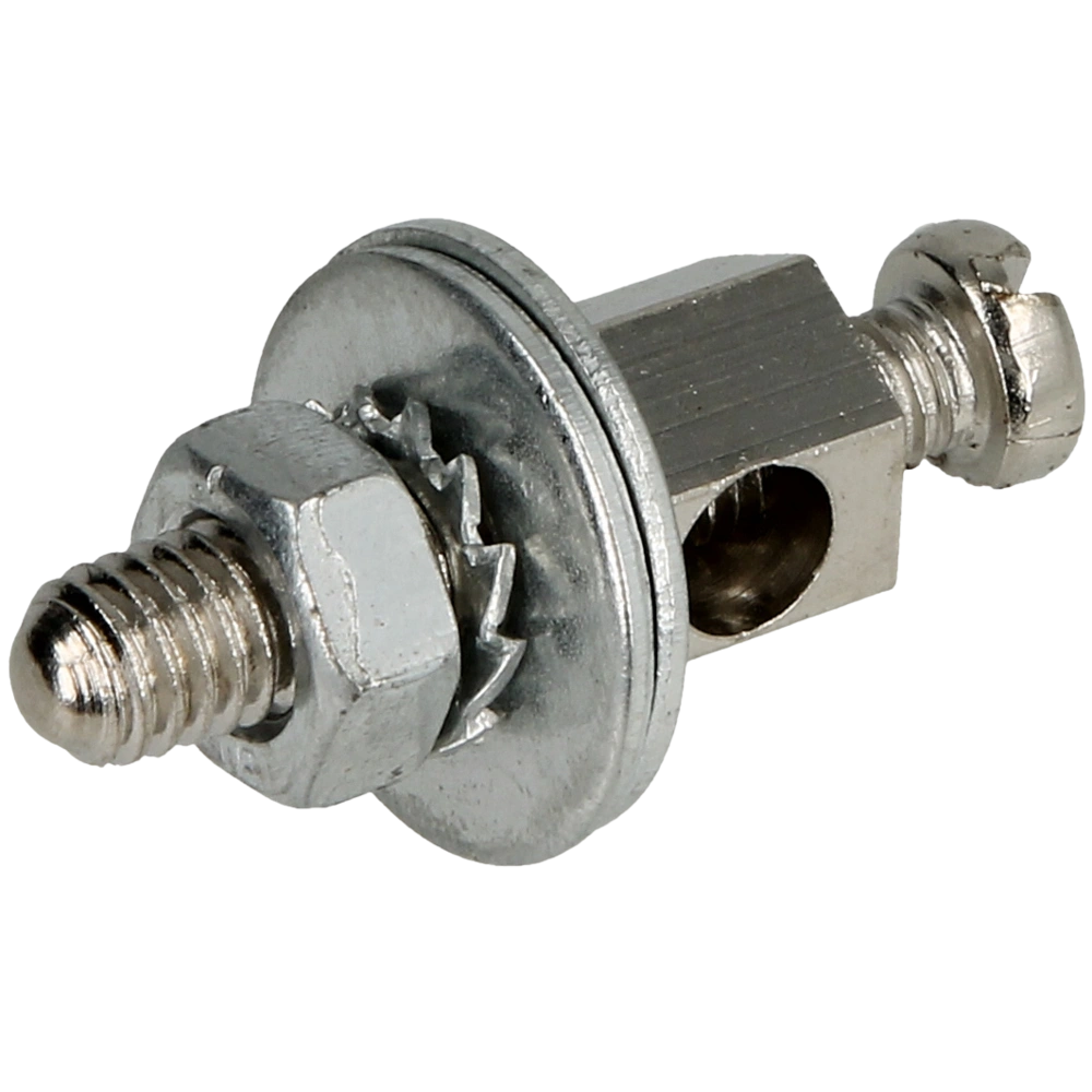 The earthing terminals are used for earthing bathtubs and shower tubs. The integrated terminal screw has an M5 thread.